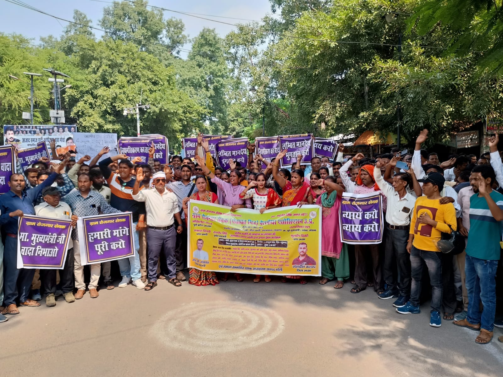 बरेली। ग्राम रोजगार सेवक वेलफेयर एसोसिएशन के बैनर तले ने सैकड़ो रोजगार सेवकों ने अपनी मांगों को लेकर गांधी उद्यान से बरेली कलेक्ट्रेट तक पैदल मार्च किया और विरोध प्रदर्शन किया। कलेक्ट्रेट पहुंचे ग्राम रोजगार सेवकों ने जिला अधिकारी कार्यालय पर मुख्यमंत्री को संबोधित 10 सूत्रीय मांगों को लेकर समर्थन में एक ज्ञापन सौंपा । ज्ञापन देते हुए ग्राम रोजगार सेवकों ने कहा कि उत्तर प्रदेश में संविदा पद पर नियुक्त 36 हजार ग्राम रोजगार सेवकों को नियमित किया जाए। इस मौके पर ग्राम सेवकों ने बताया कि उनकी सरकार से मांग है कि ग्राम पंचायतों में सहायक सचिव ग्राम विकास सहायक का पद सृजित कर ग्राम रोजगार सेवकों को समायोजित करते हुए राज्य कर्मचारी का दर्जा दिया जाये। साथ ही रोजगार सेवकों के भविष्य को सुरक्षित करने हेतु मानव संसाधन नीति (एआर पालिसी) एवं रोजगार सेवकों की सेवा समाप्ति के पूर्व श्रम उपायुक्त मनरेगा की सहमति ली जाये एवं न्यूनतम मानदेय 24,000/- रूपये प्रतिमाह की व्यवस्था किया जाय। इसके साथ भाजपा शासित राज्यों में राजस्थान, उड़ीसा, हिमांचल प्रदेश के तर्ज पर ग्राम रोजगार सेवकों को नियमित किया जाय। उनके मासिक मानदेय भुगतान के लिए पृथक बजट की व्यवस्था का प्रावधान किया जाये या मानदेय भुगतान योजना मद से किया जाये। उनकी एक मांग यह भी है कि ग्राम पंचायतों में मनरेगा कार्यों का पासवर्ड भुगतान का प्रथम डोंगल हस्ताक्षरकर्ता के रूप में ग्राम रोजगार सेवकों को दिया जाये साथ ही साथ जहां रोजगार सेवक सम्बद्ध हैं, वहां पर पासवर्ड आई डी रोजगार सेवकों को दी जाए । ग्राम रोजगार सेवकों के जॉब चार्ट में अन्य कार्य जोड़ते हुए विभागीय कर्मी घोषित किया जाये। मनरेगा कार्यों की बेहतर मानीटरिंग के लिए उच्च गुणवत्ता वाले एड्रायड मोबाइल फोन उपलब्ध कराये जाये एवं डाटा रिचार्ज दिया जाये। साथ ही उप्र राज्य ग्रामीण आजीविका मिशन की भाँति 20 दिन का आकस्मिक अवकाश एवं चिकित्सा अवकाश 12 दिनों की व्यवस्था का आदेश जारी किया जाये। ग्राम रोजगार सेवकों का न्याय पंचायत पर स्थानान्तरण की व्यवस्था को लागू किया जाये। ग्राम रोजगार सेवकों के परिवार के मृतक आश्रित को सेवा प्रदान की जाये। ज्ञापन देने वालों में गंगादीन कश्यप जिलाध्यक्ष, सतीश कश्यप ,सरिता यादव महिला मोर्चा जिलाध्यक्ष, जयसिंह गंगवार ,दीपक कुमार ,ममता राजपूत ,रमेश चंद्र सहित बड़ी संख्या में ग्राम रोजगार सेवक मौजूद रहे ।