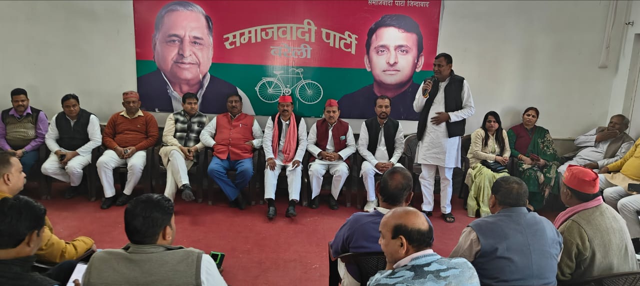 बरेली। समाजवादी पार्टी कार्यालय बरेली में मासिक हुई बैठक की अध्यक्षता को संबोधित करते हुए जिलाध्यक्ष शिव चरन कश्यप ने कहा राष्ट्रीय अध्यक्ष जी के निर्देश पर पूरे प्रदेश में पीडीए पंचायत का कार्यक्रम चल रहा है हर विधान सभा में कम से कम दो सेक्टरों डेली लगे और हर समाज हर वर्ग के लोगों को जोड़ने का काम करे कल घोषगंज के परिवारों को सकुशल उनके घर पहुंचाने का हम लोगों ने प्रशासन के सहयोग से किए जो लगभग 6महीने से दर दर भटक रहे थे
