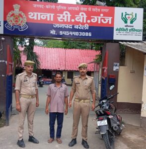 थाना सीबी गंज पुलिस टीम को दिनांक 27 मई को प्रकाश में आये अभियुक्त वीरेन्द्र पुत्र शिवचरन निवासी ग्राम धमीपुर थाना बहेड़ी बरेली को बण्डिया नहर पुलिया के रास्ते से गिरफ्तार किया गया। जिसके कब्जे से चोरी करी गयी मोटरसाईकिल नम्बर UP25CC-3873 बरामद हुई है। गिरफ्तारशुदा अभियुक्त के विरूद्ध नियमानुसार आवश्यक कार्यवाही की जा रही है।