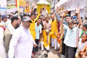 बरेली। श्री जगन्नाथ स्वामी मंदिर ( मठ गद्दी स्थल तुलसीदास जी महाराज) व्यवस्थापक श्री राधा संकीर्तन मंडल ट्रस्ट रजि. बरेली द्वारा भव्य भगवान जगन्नाथ रथ यात्रा निकाली गई। रथ यात्रा से पूर्व सुबह जगन्नाथ जी का अभिषेक एवं विधि विधान से हवन तुलसी मठ के महंत नीरज नयन दास द्वारा किया गया। रथ यात्रा का शुभारंभ वन एवं पर्यावरण मंत्री डॉ अरुण कुमार सक्सेना,सांसद छत्रपाल सिंह गंगवार,संरक्षक एवं कैंट विधायक संजीव अग्रवाल ने आरती करके किया। रथ यात्रा मंदिर से प्रारंभ होकर आयुर्वैदिक कॉलेज साहू गोपीनाथ,फर्नीचर मार्केट के पीछे से होते हुए पटेल चौक, नोवेल्टी से रोडवेज पर सम्पपन हुई… रथ यात्रा मे हज़ारो लोग सम्मिलित हुए… रास्ते मे लोगो ने जगह जगह पुष्प वर्षा एवं आरती करके रथ यात्रा का स्वागत किया।