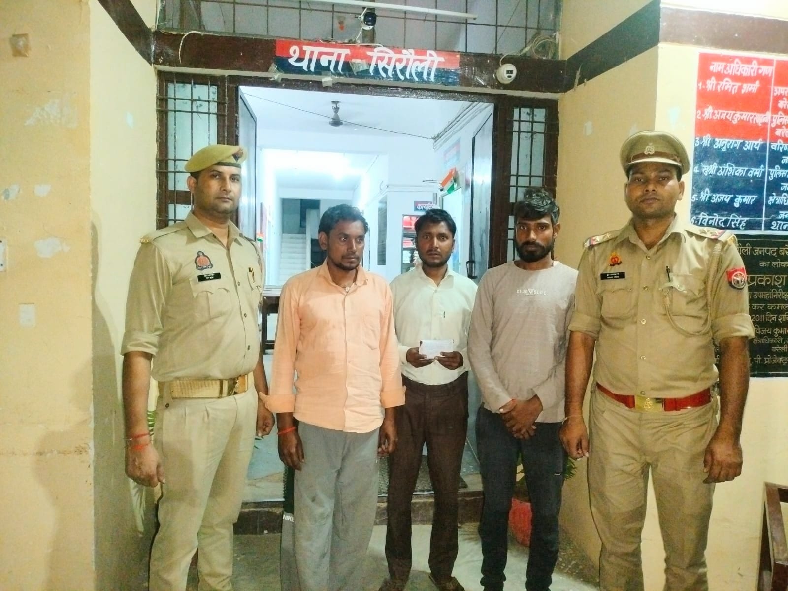 गिरफ्तार आरोपियों की पहचान नेम सिंह , चन्द्रप्रकाश और पुष्पेन्द्र , तीनों निवासी ग्राम लभारी, थाना सिरौली, जनपद बरेली के रूप में हुई है। पुलिस ने उनके पास से कुल 1130 रुपये नकद और ताश के 52 पत्ते बरामद किए।