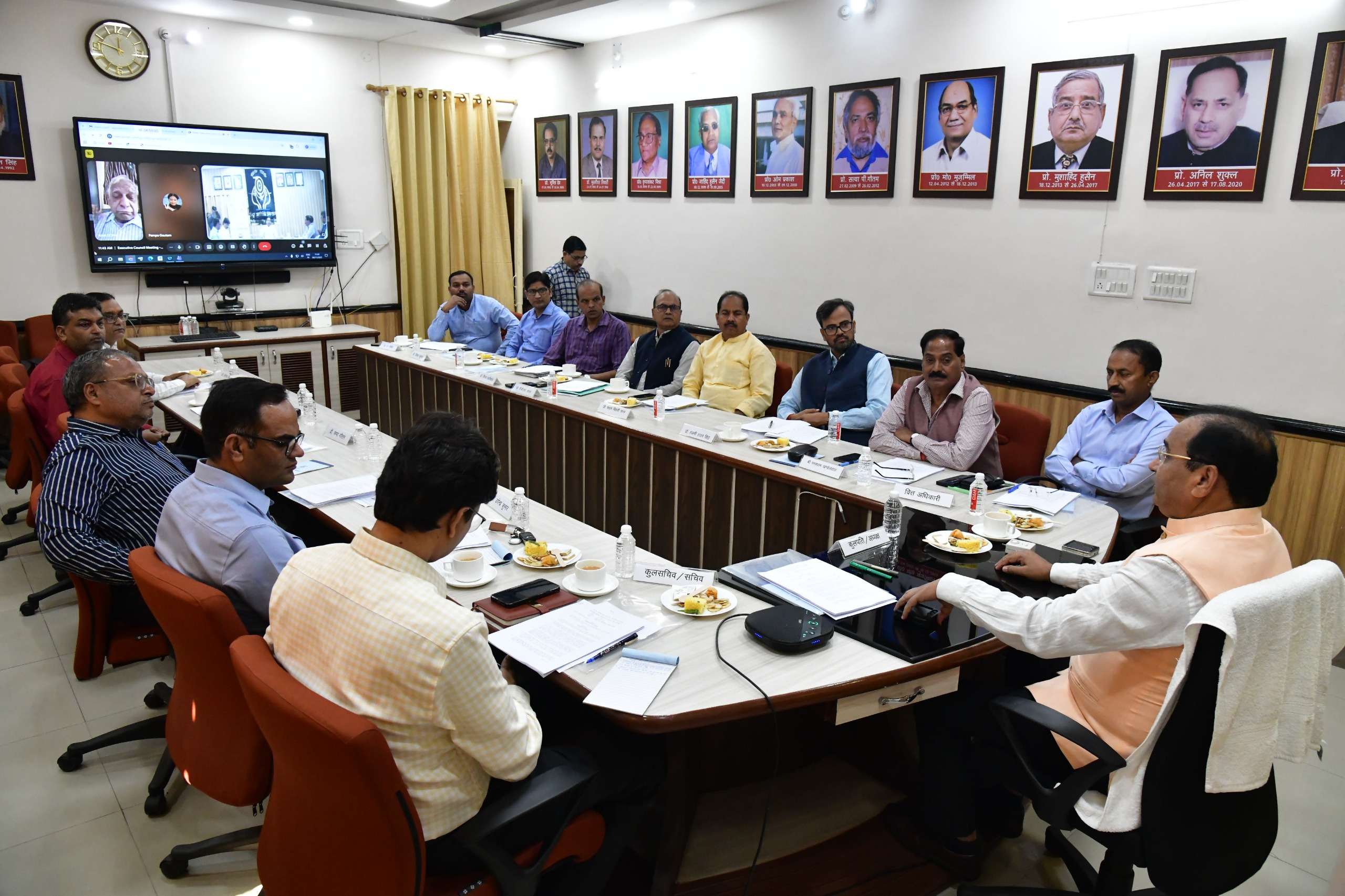 कृषि संकाय में नए पद सृजित कर नियुक्ति प्रक्रिया को स्वीकृति। यूजीसी नियमों के अंतर्गत “प्रोफेसर ऑफ प्रैक्टिस” श्रेणी में 7 नए शिक्षकों की नियुक्ति। इतिहास विभाग में ‘एक्सपीरियंशियल लर्निंग ग्रुप’ के संचालन की अनुमति जिसके तहत छात्र पांचाल संग्रहालय में आगंतुकों को जानकारी प्रदान करेंगे। बैठक में गवर्नर नामित सदस्य घनश्याम खंडेलवाल, प्रो. रजनी रंजन, कुलसचिव हरिश्चंद, वित्त अधिकारी विनोद कुमार, प्रो. श्याम बिहारी लाल, प्रो. विजय बहादुर यादव, प्रो. विनय ऋषिवाल, डॉ. रामकेवल, प्रो. उपेंद्र कुमार, डॉ. आशीष जैन, डॉ. सौरभ वर्मा, डॉ. विमल कुमार, प्रो. विनय कुमार, तथा ऑनलाइन माध्यम से प्रो. रामगोपाल (गवर्नर नॉमिनी) एवं प्रो. पंपा गौतम शामिल रहे।