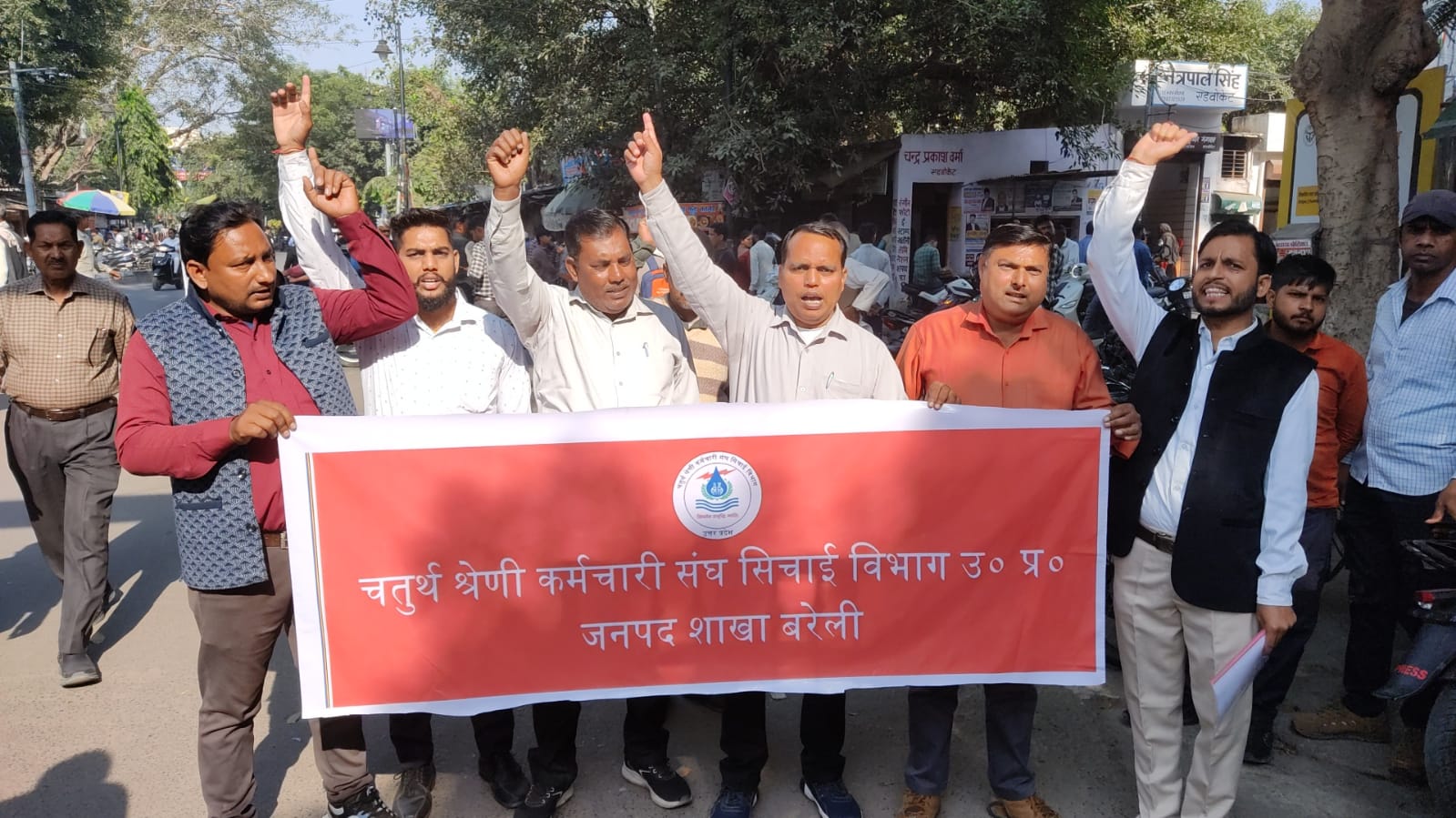 बरेली। चार सूत्रीय मांगों को लेकर चतुर्थ श्रेणी कर्मचारी संघ सिंचाई विभाग उत्तर प्रदेश के कर्मचारियों ने जिला अध्यक्ष विजेंद्र सिंह और जिला मंत्री भारत सिंह पटेल के नेतृत्व में मुख्यमंत्री को संबोधित ज्ञापन जिला अधिकारी कार्यालय में सिटी मजिस्ट्रेट को दिया। जिलाध्यक्ष बिजेंद्र सिंह ने मांग की है कि उत्तर प्रदेश चतुर्थ श्रेणी कर्मचारियों को मृतक आश्रितों को उनकी योग्यता अनुसार नियुक्ति दिए जाने की मांग की है।