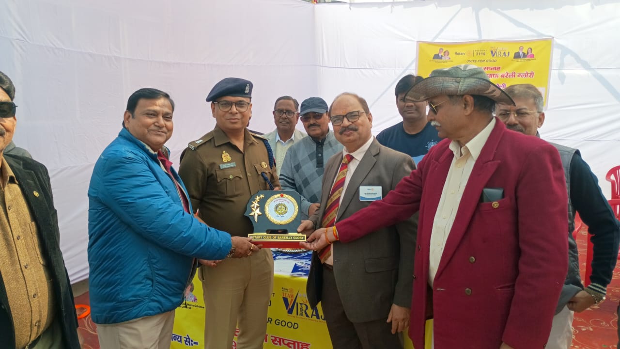 रोटरी क्लब बरेली ग्लोरी ने सैटेलाइट चौराहे पर लगाया यातायात सुरक्षा शिविर